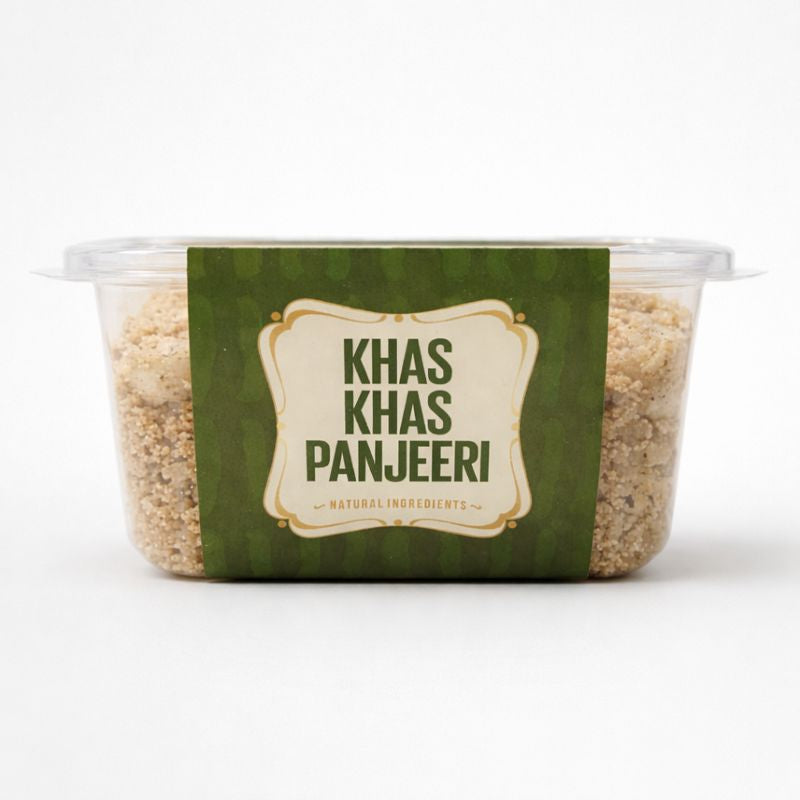 Slow-roasted to perfection, every bite delivers a warm, nutty flavour and a soft, crumbly texture that melts in your mouth. Known for its energy-boosting and strengthening properties, Khas Khas Panjeeri is ideal for daily nourishment, especially during recovery, winter season, and post-care diets.